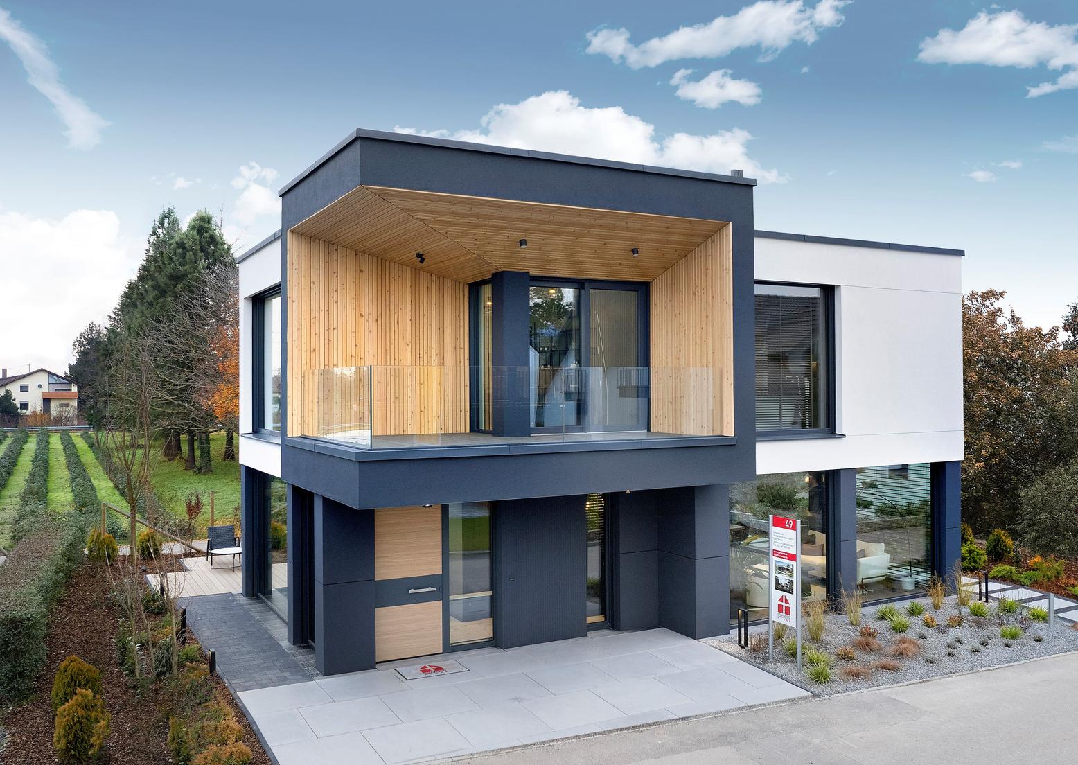 In Poing offenbart ein modular errichteter Bungalow, welch großartige Lösungen die Bauweise ermöglicht. Wandbreite und raumhohe Panoramafenster fluten die Räume des Musterhauses mit Tageslicht und schaffen phantastische Sichtachsen. Dieses beeindruckende Raumgefühl muss man live erleben! Das smarte Musterhaus zeigt, dass der Modulbau höchsten Ansprüchen an Design, Komfort und Energieeffizienz gerecht wird.